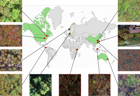 The dataset covers 11 study sites across 9 countries including Australia, Canada, China, Germany, Kenya, Malaysia, Norway, Panama, and United States, spanning tropical, subtropical, and temperate climate zones. The dataset represents diverse forest types, such as tropical rainforests, montane forests, moist forests, and savanna woodlands; subtropical evergreen broadleaf and mixed forests; and temperate broadleaf and mixed forests. In addition, the dataset also includes both natural and urban forests.